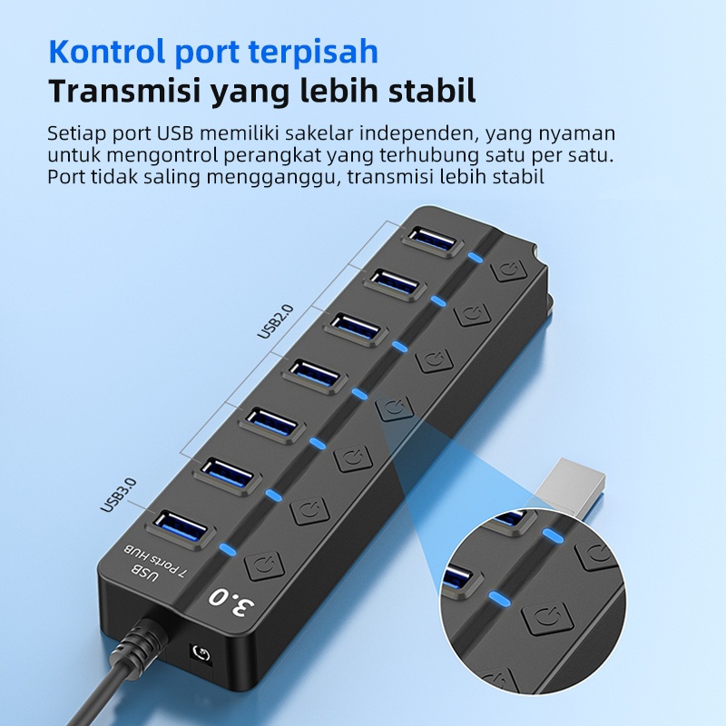Actual【】USB Hub 4-in-1/7-in-1 USB 3.0 5Gbps Saklar Independen 1.2M / 30CM Black Aksesoris Desktop & Laptop/Digital devices