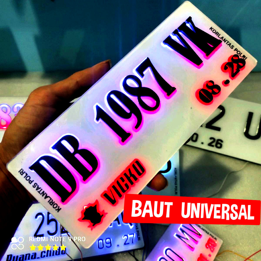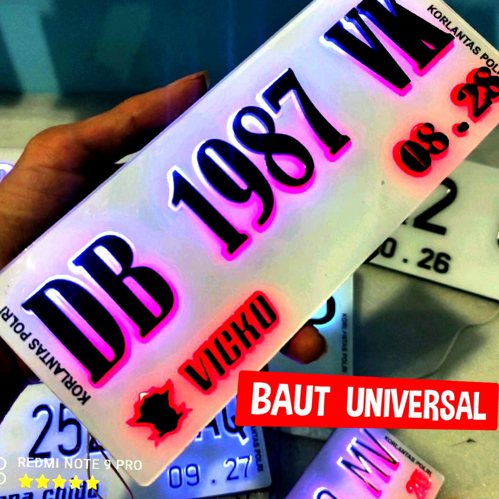 Plat Motor Putih LED Akrilik Timbul Baut Universal