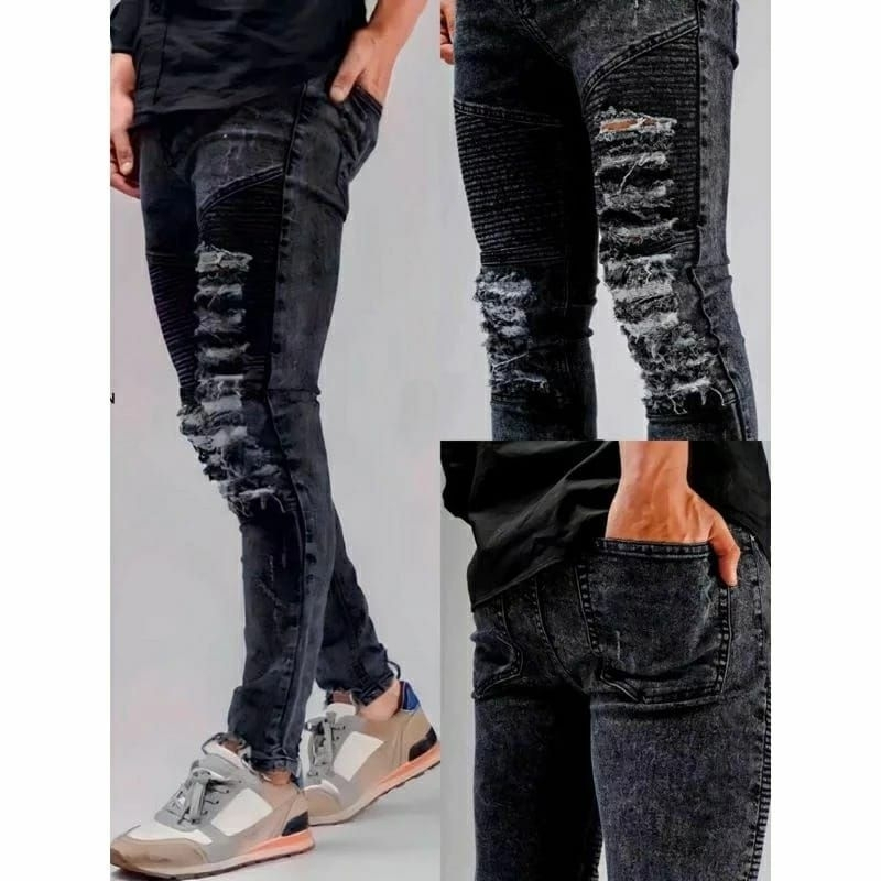 CELANA BIKERS PRIA CELANA JEANS PANJANG DENIM PRIA SKINNY RIPPED