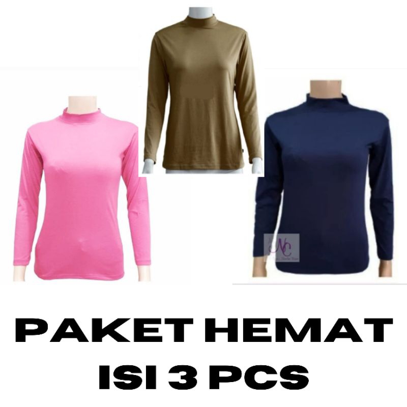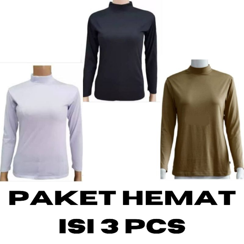 SPESIAL ISI 3 PCS Manset Lengan Panjang Baju Atasan Wanita Krah Tinggii Maset Dalaman Wanita
