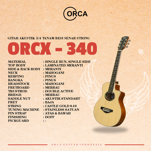 ORCA Gitar Akustik 3/4 Tanam Besi ORCX - 340 Senar String Guitar
