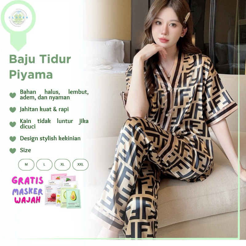 Baju Tidur Piyama Pajamas Wanita Dewasa Import Full Kancing Motif Terbaru Celana Panjang