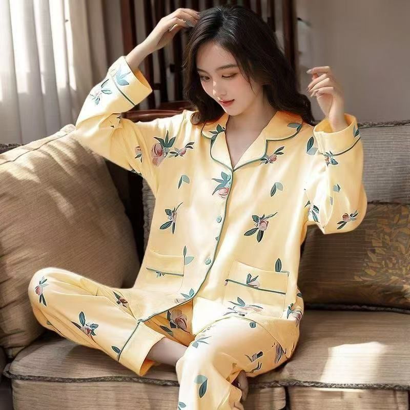 ( KATUN ) Stock Baju Tidur Piyama Bahan Katun Tebal Set Lengan Panjang Celana Panjang / Piyama Import / Premium Qu