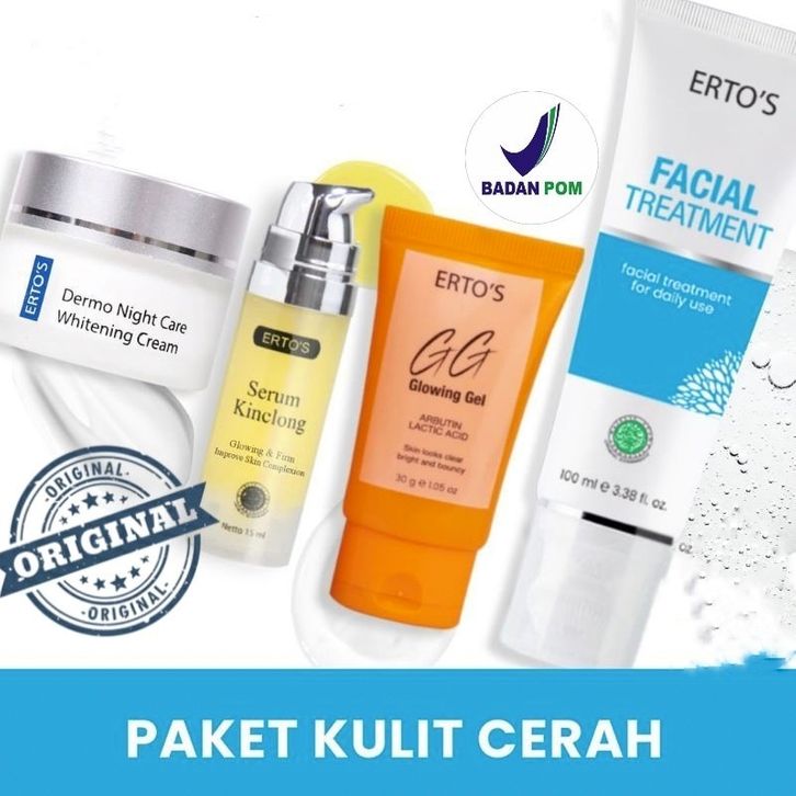 Ertos - Paket Kulit Cerah dan Glowing - (GG Glowing, Serum Kinclong , Facial Treatment, Night Cream) isi 4
