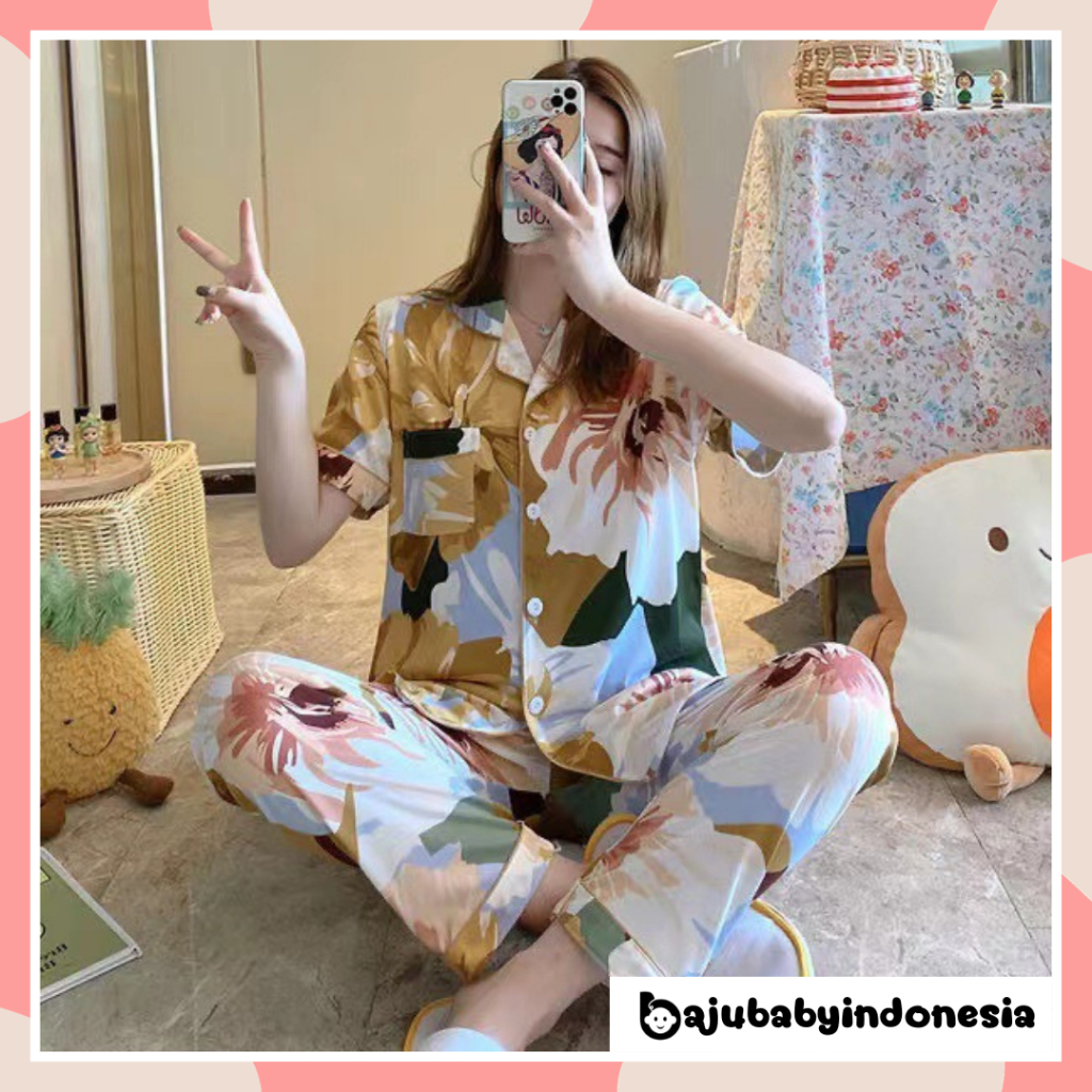 BBI Setelan baju tidur wanita dewasa bahan poliester premium adem dan serap keringat lengan pendek panjang celana p