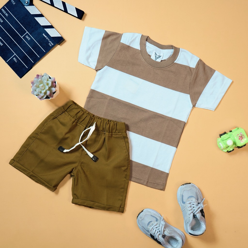 BRAVEKIDS - BROADSTRIPE SETELAN ANAK KAOS DAN CELANA COTTON COMBED 24S SABLON PLASTISOL