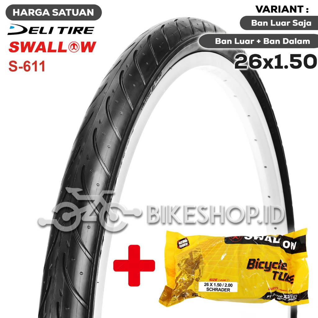 JS - Ban Luar 26 x 1.50 Sepeda SWALLOW Ukuran 26x1.50 DELI TIRE MTB/Mini/Federal Hitam S-611