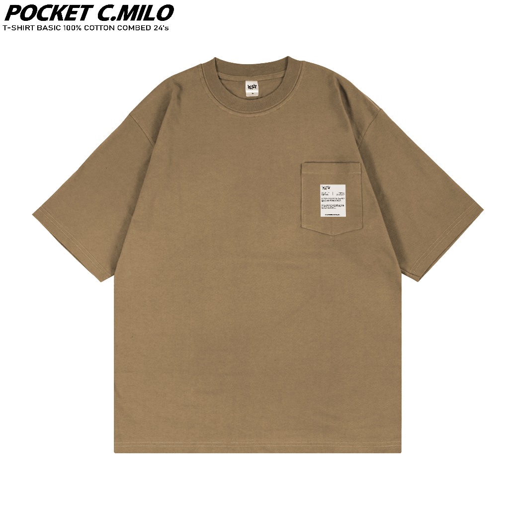 KAOS POCKET OVERSIZE COKLAT MILO|KAOS POLOS POCKET UNISEX PRIA WANITA|24s COTTON PREMIUM