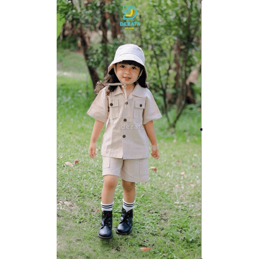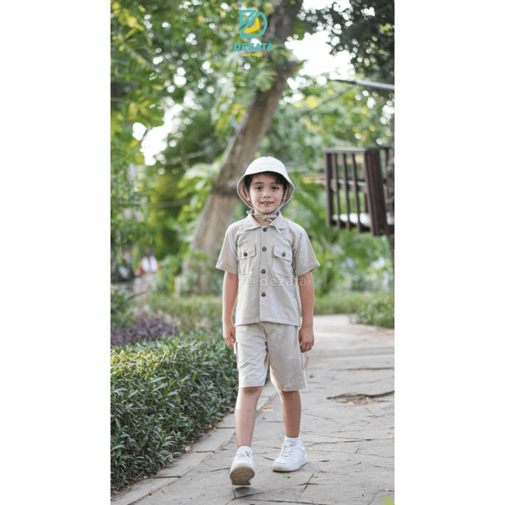 DEZATA Set Safari Setelan Anak 1-6 Tahun Setelan Outing Anak Setelan Baju Celana Dan Topi Anak Laki-laki Dan Peremp