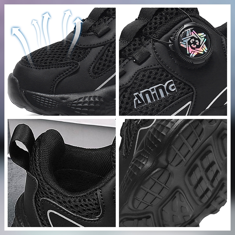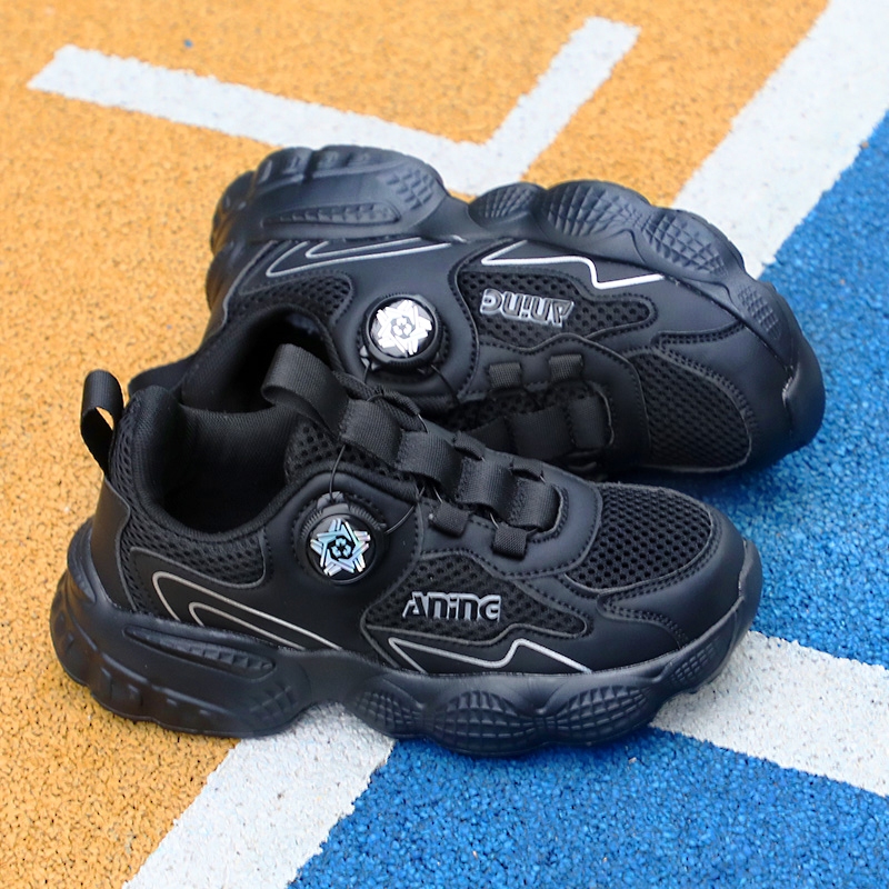 ANING ANINGBOY-Sepatu anak-anak sepatu kets dasi bebas hitam sepatu sekolah yang lembut dan menyerap keringat