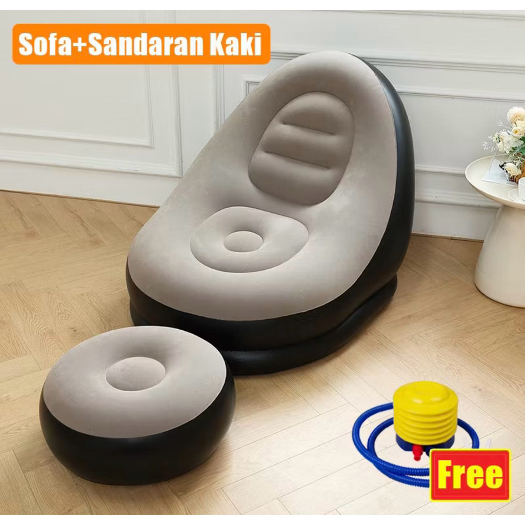 Sofa Santai Angin FREE POMPA Kursi Santai+Sandaran Kaki Portable Sofa Tiup Dengan Sandaran Kasur Angin Bed Angin Kursi Santai Sofa Inflatable Matras Lazy Bag qxf