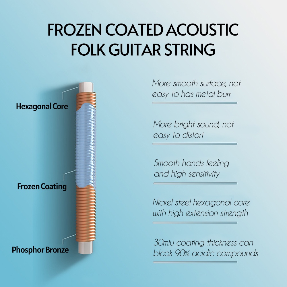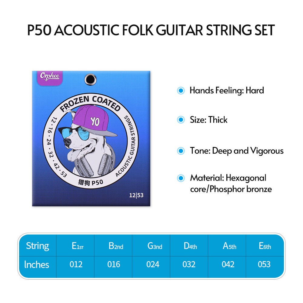 Orphee P50 Senar Gitar Akustik 1 Set Ukuran 12-53 Phosphor Copper Nano Frozen Coat