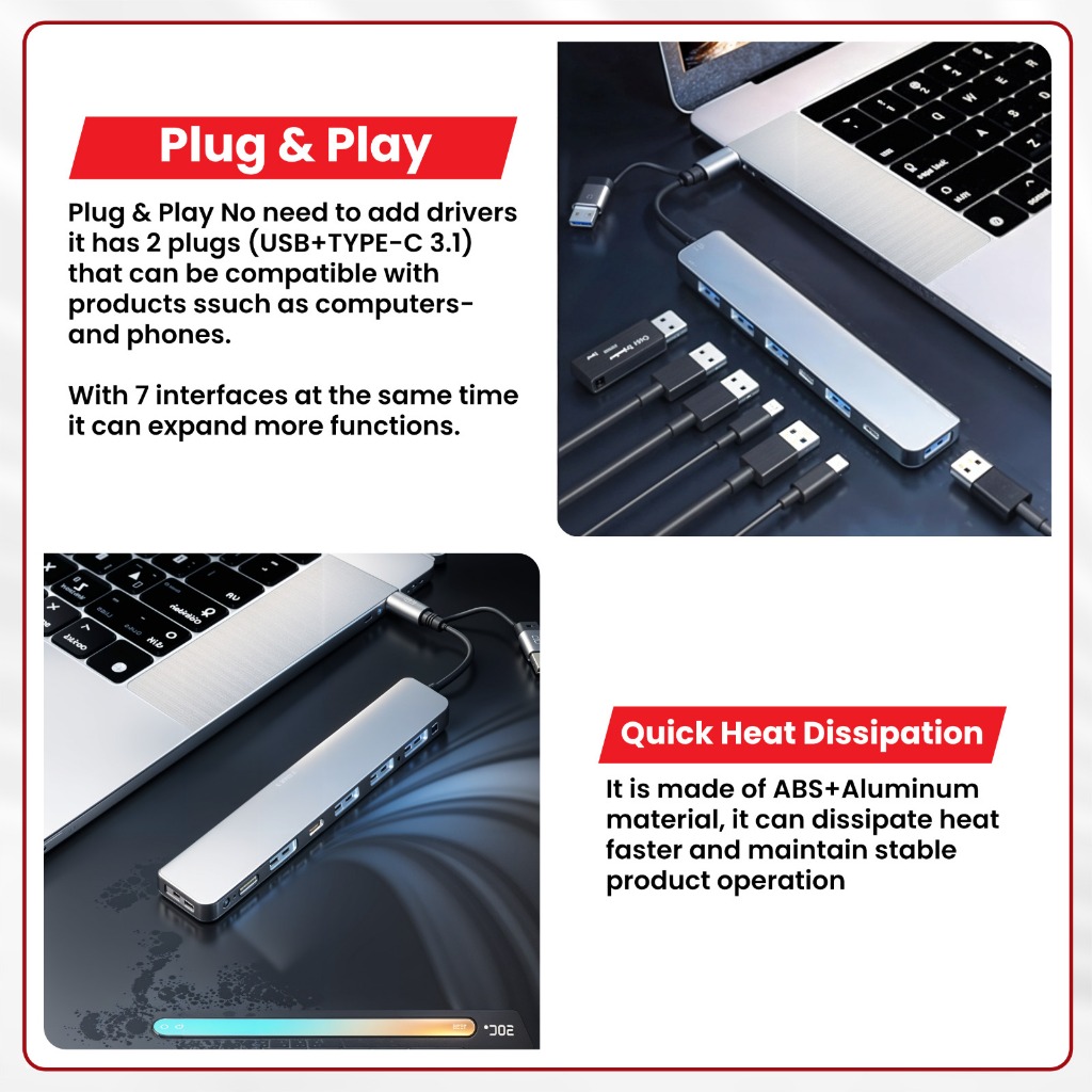 USB HUB RX7 3.0 8in1 TYPE C TO USB 4 + SD + TF CARD READER