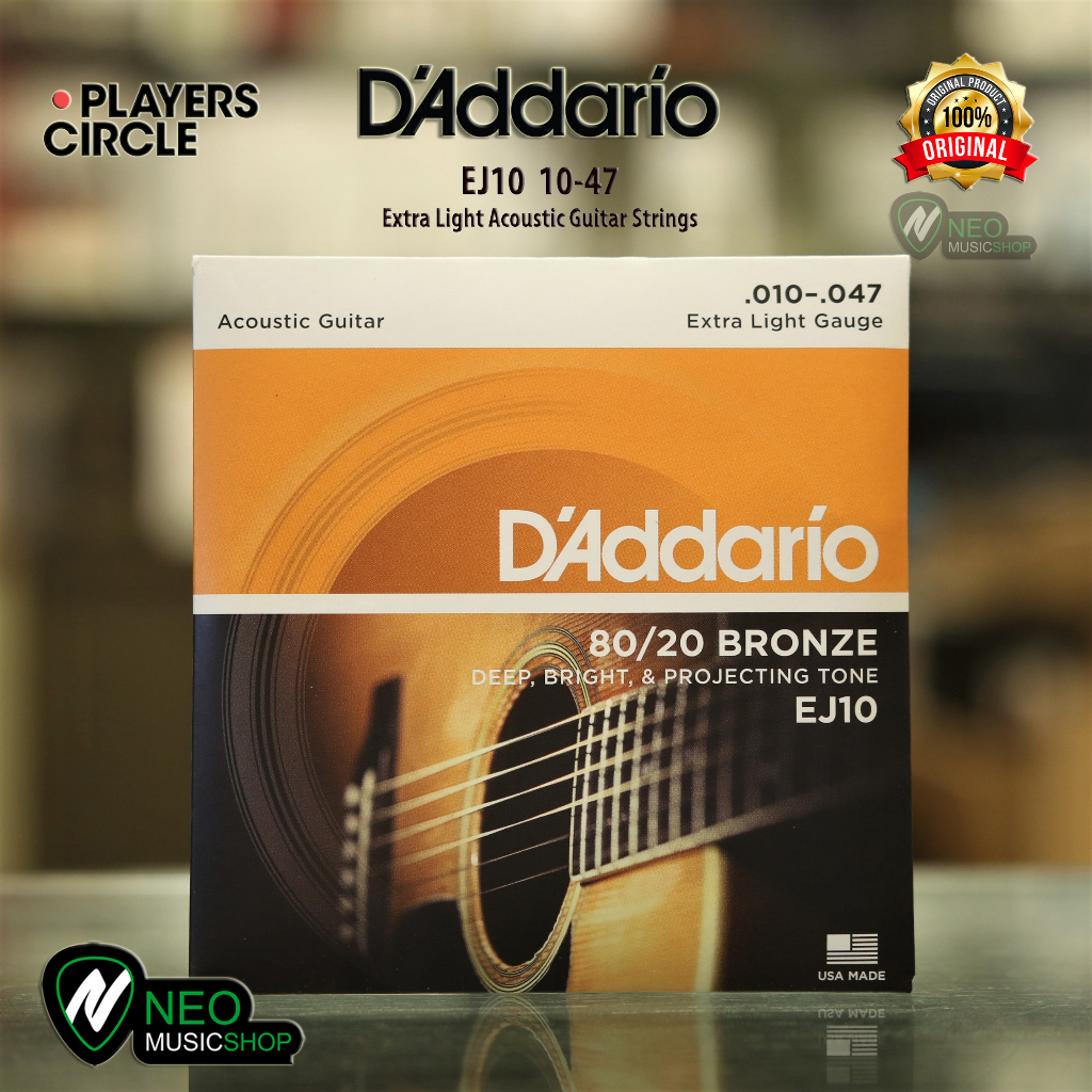Senar Gitar Acoustic D'Addario EJ10 80/20 Bronze (Original)