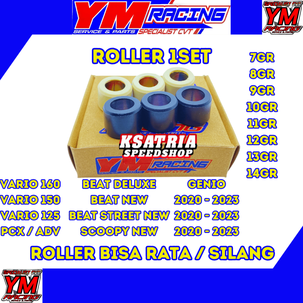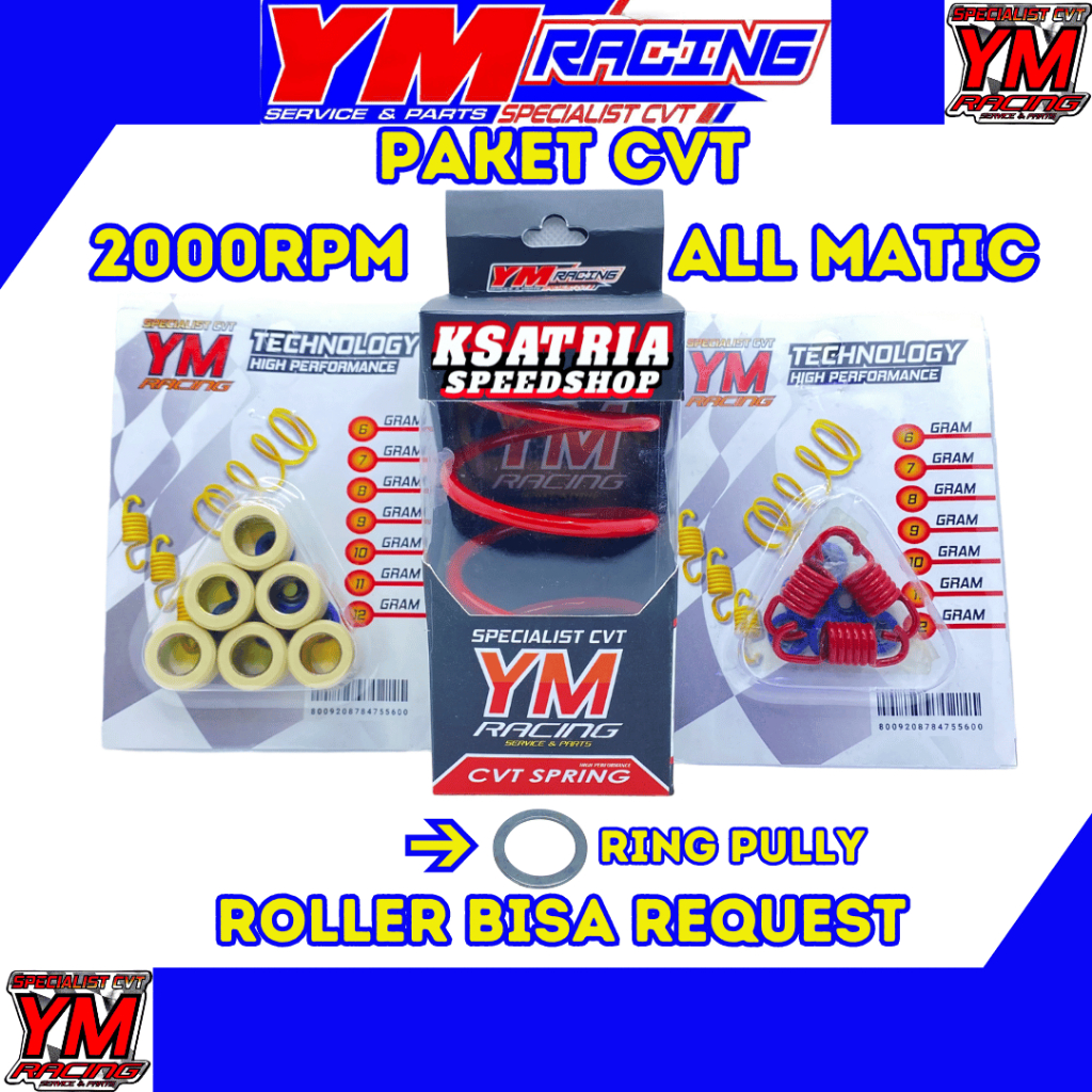 PAKET CVT 2000RPM YM RACING ALL MATIC | (Beat/Mio/Vario/Scoopy/Genio/Nmax/Aerox/Lexi/PCX/Xride/Fino/Xeon/Spacy/Fazzio/Filano) | ROLLER PER CVT PER SENTRI RING PULLY |