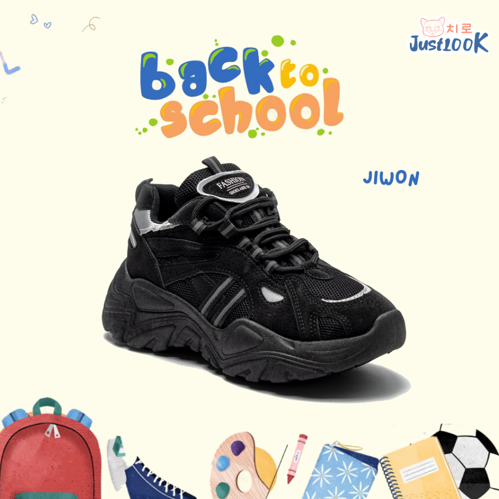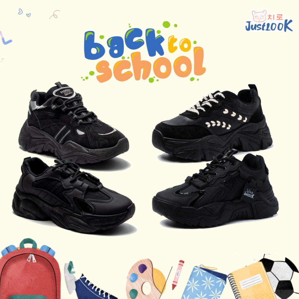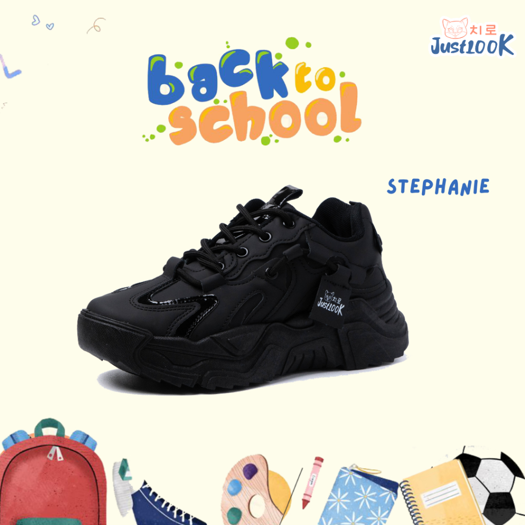 JustLook Sepatu Sekolah Hitam - Sneakers Hitam Sekolah Fashion Korea