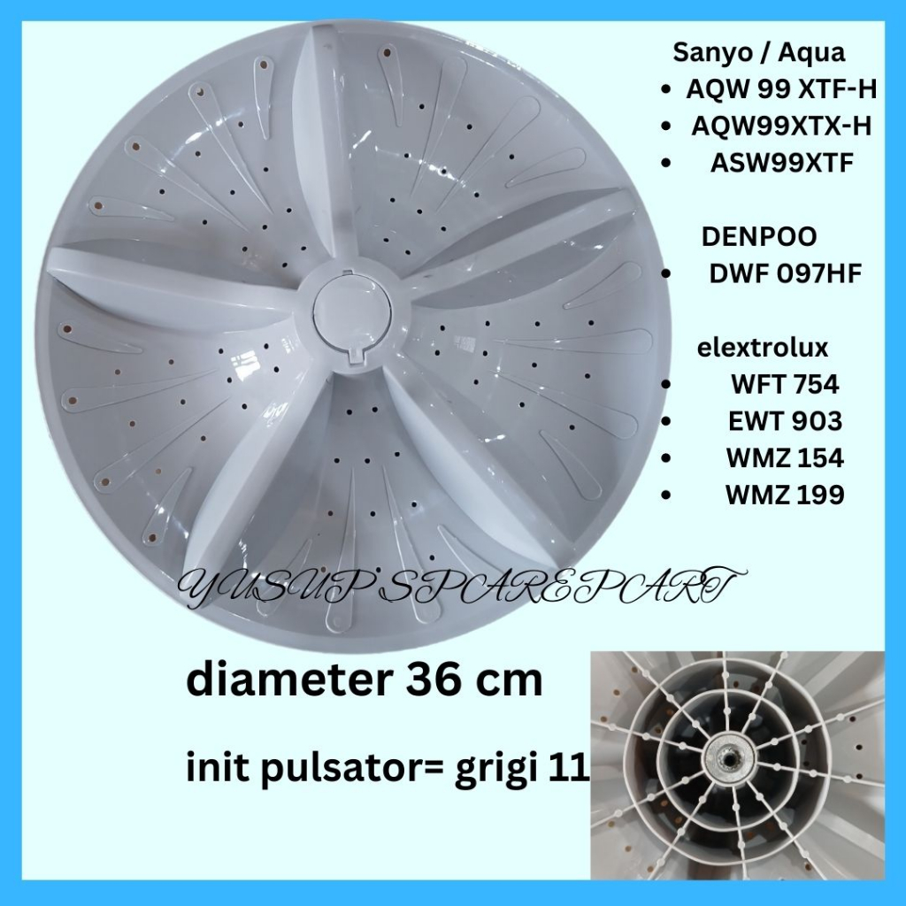 Pulsator mesin cuci 1 tabung aqua, elextrolux, sharp Diameter 36 cm As 11