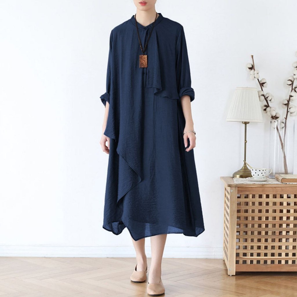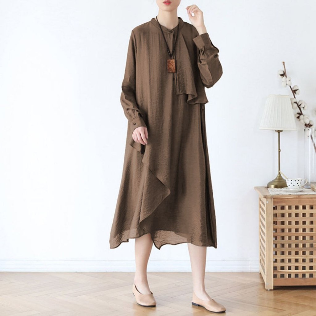 Adenia Long Tunik Top Atasan Wanita Remaja Muslim Kekinian Casual Lengan Panjang Matt Polo Linen OOTD Fashion Hijab