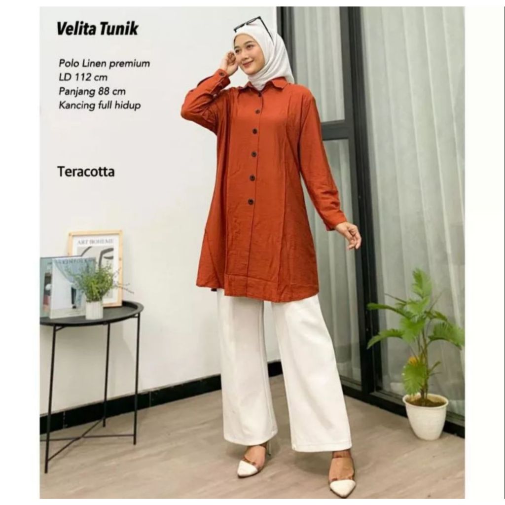 Velita Tunik Baju Tunik Wanita Terbaru Bahan Polo Linen Premium Size Jumbo el Simple Elegan ern