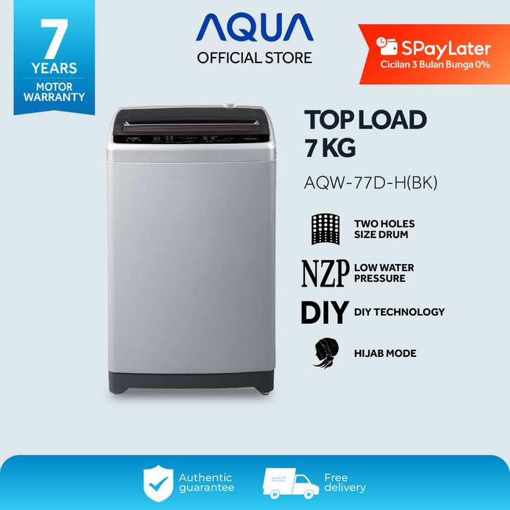 CICILAN TANPA DP! Mesin Cuci AQUA Elektronik Mesin Cuci Top Loading 7KG AQW-77D-H BK Mesin Cuci Aqua 7KG Hijab Series