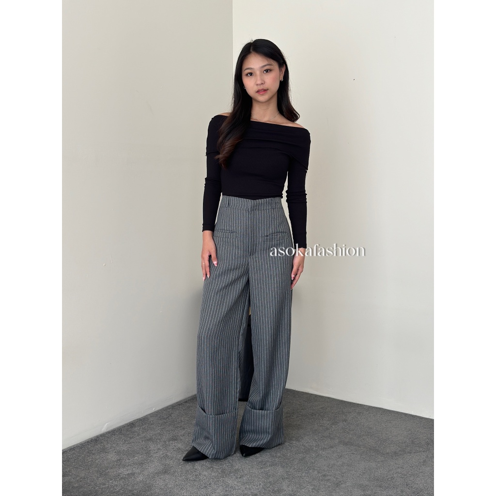 ASOKA Tessa Pants 3140 - Bawahan Celana Panjang Wanita - Trousers Stripe Cullote - Loose Pants High Waist Kekinian