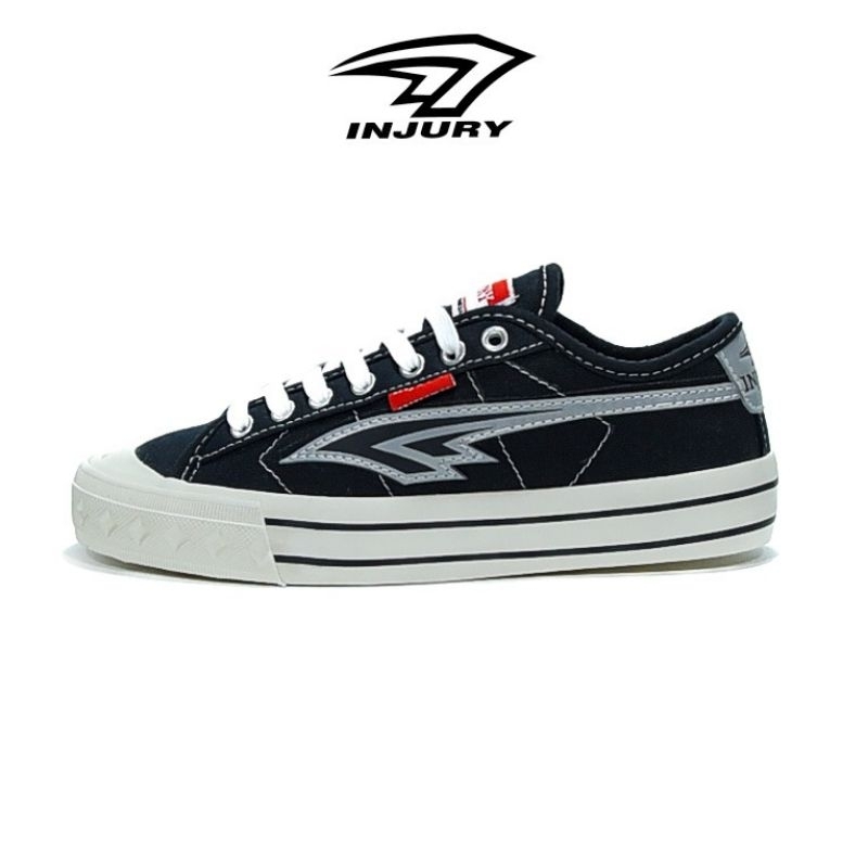 Injury - Sepatu Sneakers Kasual Pria Wanita Sepatu Sekolah Pria Wanita Everest Hitam Putih FLASH 36 - 45