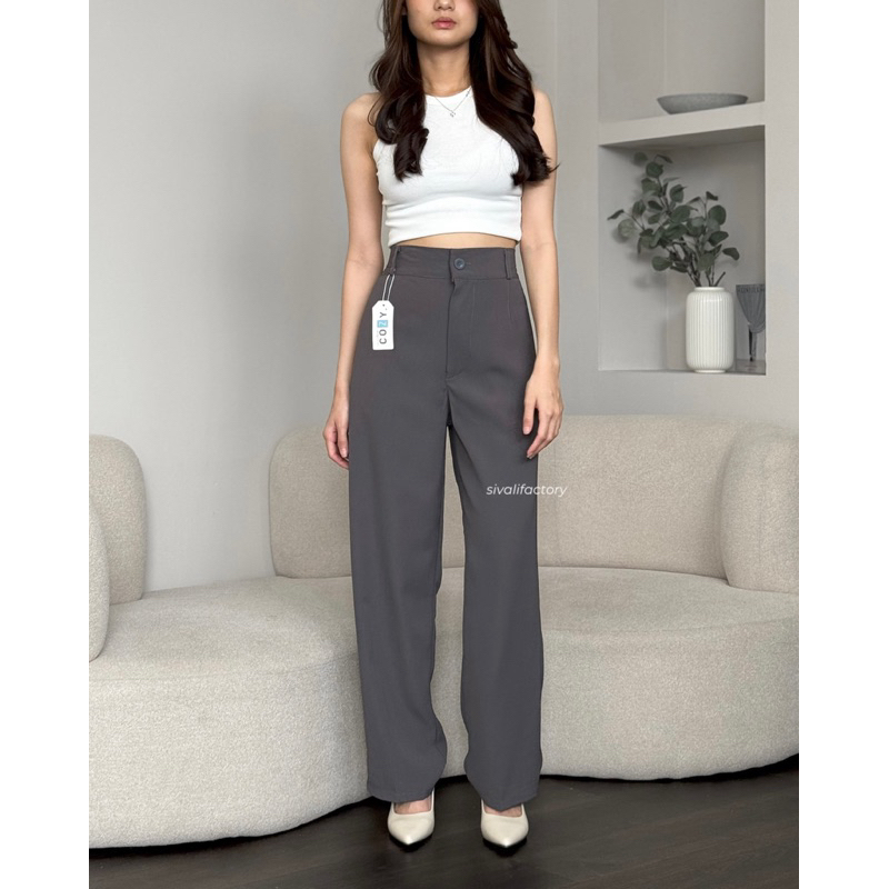 SIVALI Classic Loose Pants - Celana Highwaist Anti Kusut - Trousers Kantor Formal / Casual Long Cullote | 890