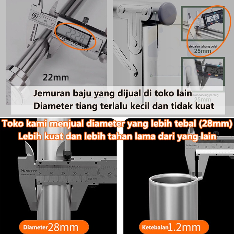 HOMIX Jemuran Portable Lipat Dinding Stainless Steel Untuk Balkon Kanopi Tiang Jemuran Dapat Diangkat Ditarik Kapasitas