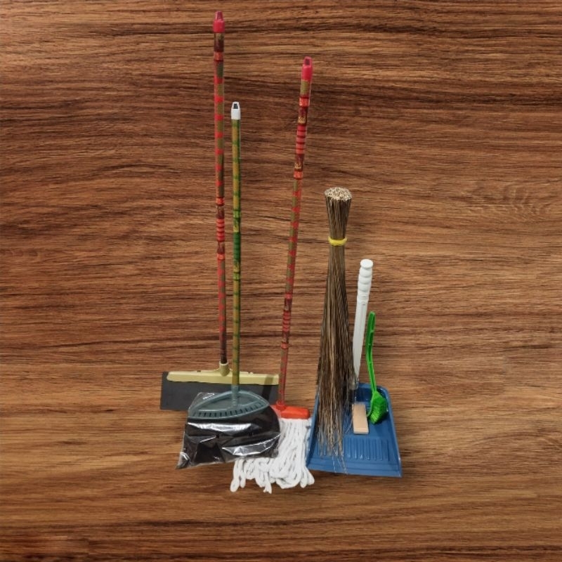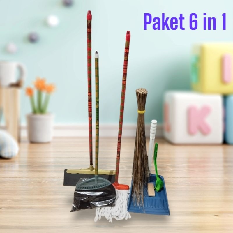 Paket Alat Kebersihan 6 in 1 untuk Pel Lantai, Wiper Karet,Sapu Ijuk, Sapu Lidi, Pengki, Sikat Bebek, dan Sikat Kayu