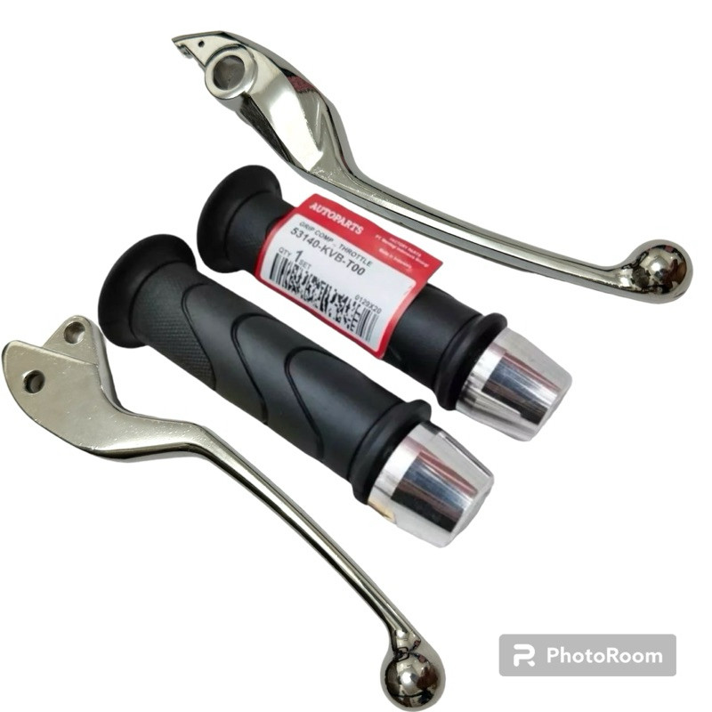 Paket 3in1 Handle rem Chrome + Handgrip Honda + Jalu Pcx Chrome besar / Honda vario 150 125 new Beat new Beat street Beat deluxe Scoopy Genio
