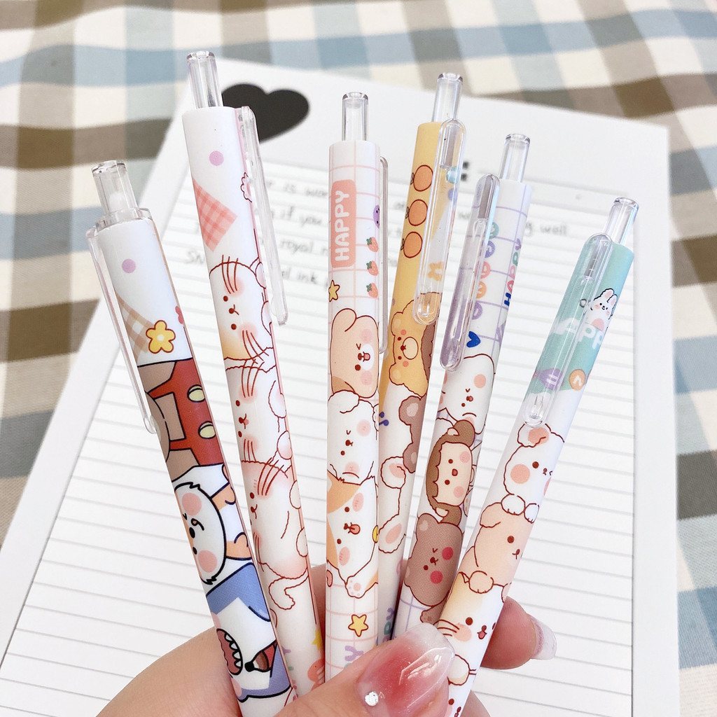 Winzige 6pcs pulpen gel set pena pen lucu 0.5mm pulpen aesthetic gel pen pulpen 1 pack mekanik pulpen tinta hitam alat tulis stationery bulpen bolpen