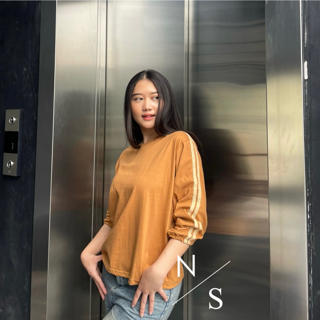 Kaos Lengan Panjang Leher Bulat Berusuk Tidak Beraturan Putih Kaos Fashion Gaya Korea Atasan Wanita Terbaru