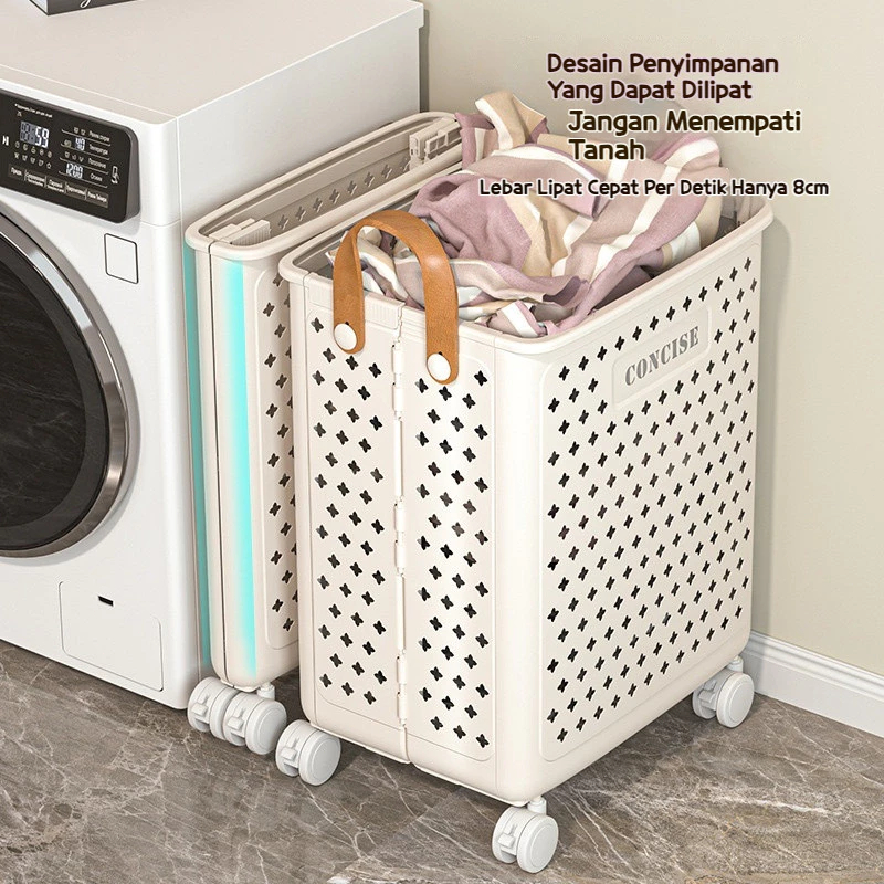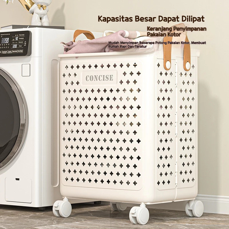 Keranjang cucian plastik dengan roda Keranjang baju kotor laundry basket plastik lipat dengan roda keranjang penyimpanan serbaguna