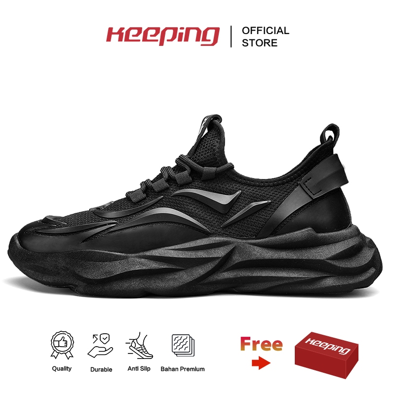 Keeping Sepatu Pria Sneakers Running Sepatu Sekolah Hitam Polos Sepatu Olahraga Cowok Kasual KSC303