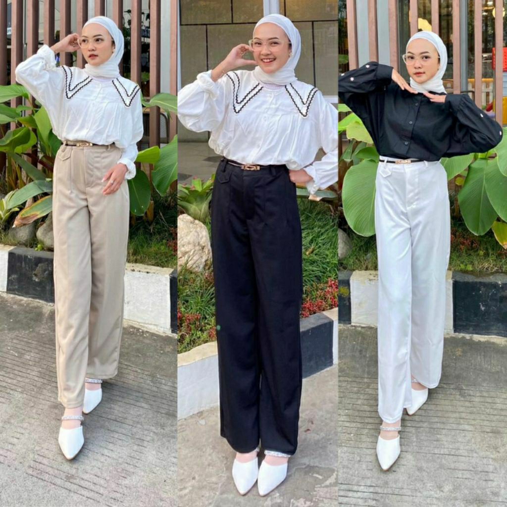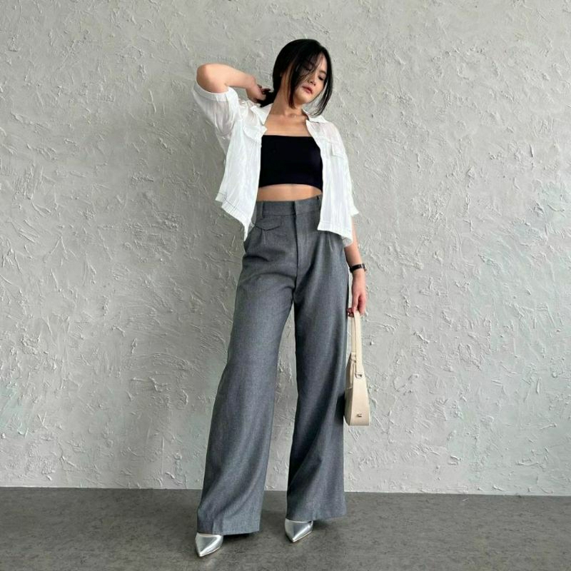 ORO PANTS Celana Kulot Highwaist Loose Pants Celana Kulot Wanita Knit Premium