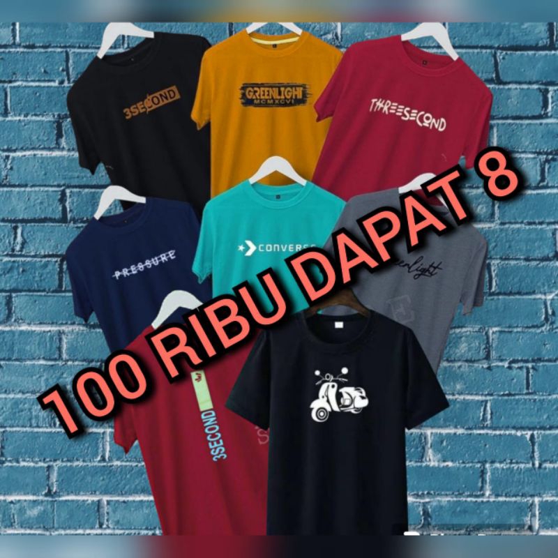 100 RB DAPAT 8 KAOS KEREN MOTIF DISTRO MASA KINI BAJU PRIA WANITA
