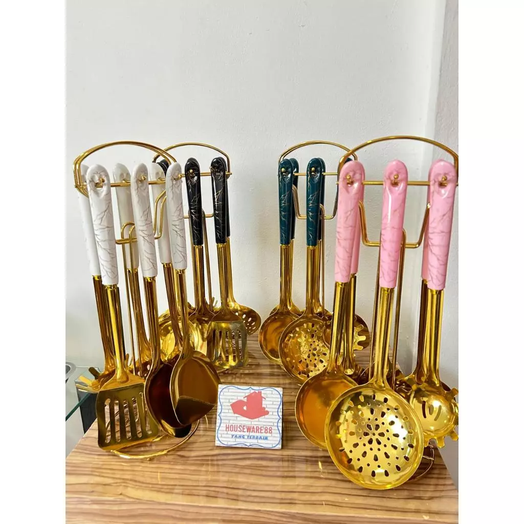 ALAT MASAK SULTAN / SPATULA MASAK SET GOLD JADE SET 7 IN 1 EMAS ELEGANT MEWAH / SPATULA KITCHEN TOOLS / SET ALAT MASAK M