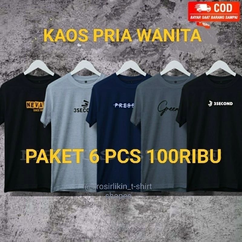 KAOS PRIA WANITA DISTRO | PAKET HEMAT 6 PCS 100RB | GROSIR MURAH | BAJU PAKAIAN COWOK CEWEK DEWASA