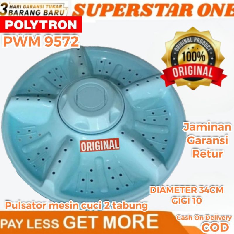 Pulsator polytron PWM 9572 mesin cuci 2 tabung lebar 34cm gigi 10