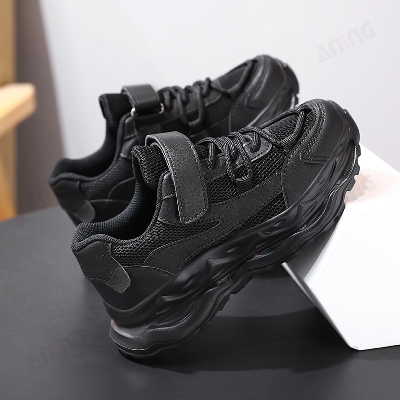 ANING ANINGBOY-Sepatu Anak Sepatu olahraga pelajar pria dan wanita sepatu jaring hitam bernapas dan tahan aus