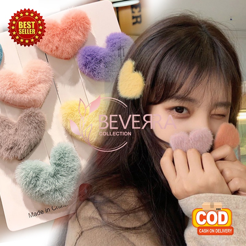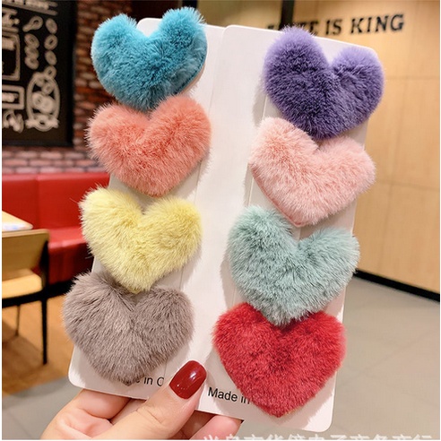 Jepit Rambut Korea Anak Perempuan Lucu Motif Love Polos Bulu Halus Aksesoris Rambut Wanita AK137