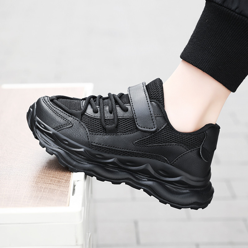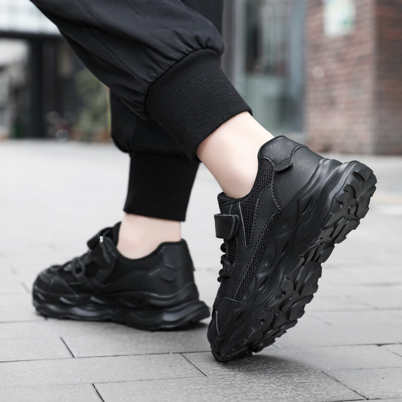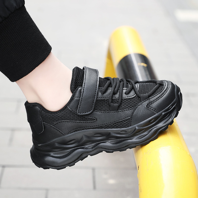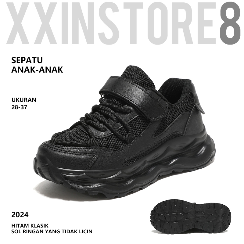 Sepatu Anak Sepatu Sneakers Hitam Mesh Bernapas Sepatu Siswa Pria dan Wanita
