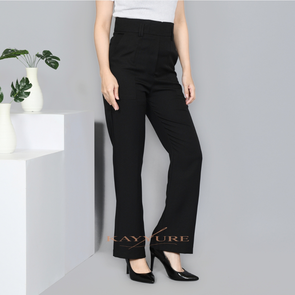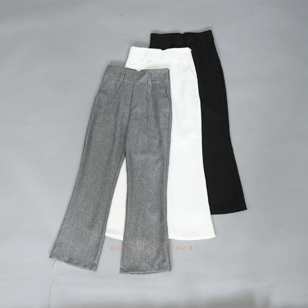[ Kayyure ] Aurelle Cutbray Highwaisted Semiwool Premium | Cutbray Curve Pants Wanita