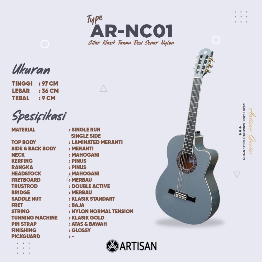 ARTISAN Gitar Klasik Tanam Besi AR - NC01 Senar Nylon Guitar