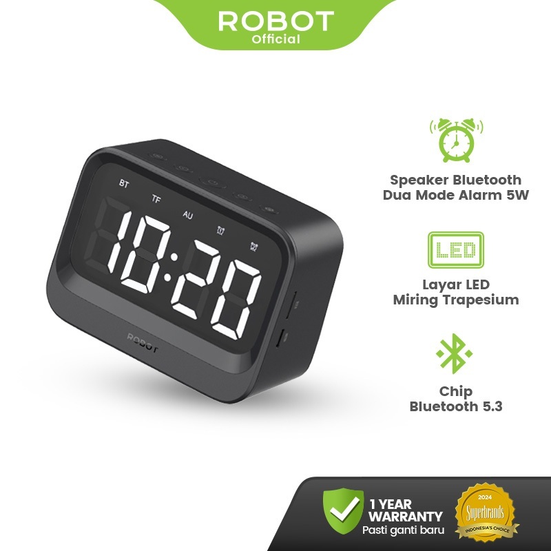 ROBOT RB620 Speaker Alarm – Jam LED Digital, Dual Smart Alarm, Bluetooth 5.3, Portable & Stylish, Garansi 1 Tahun