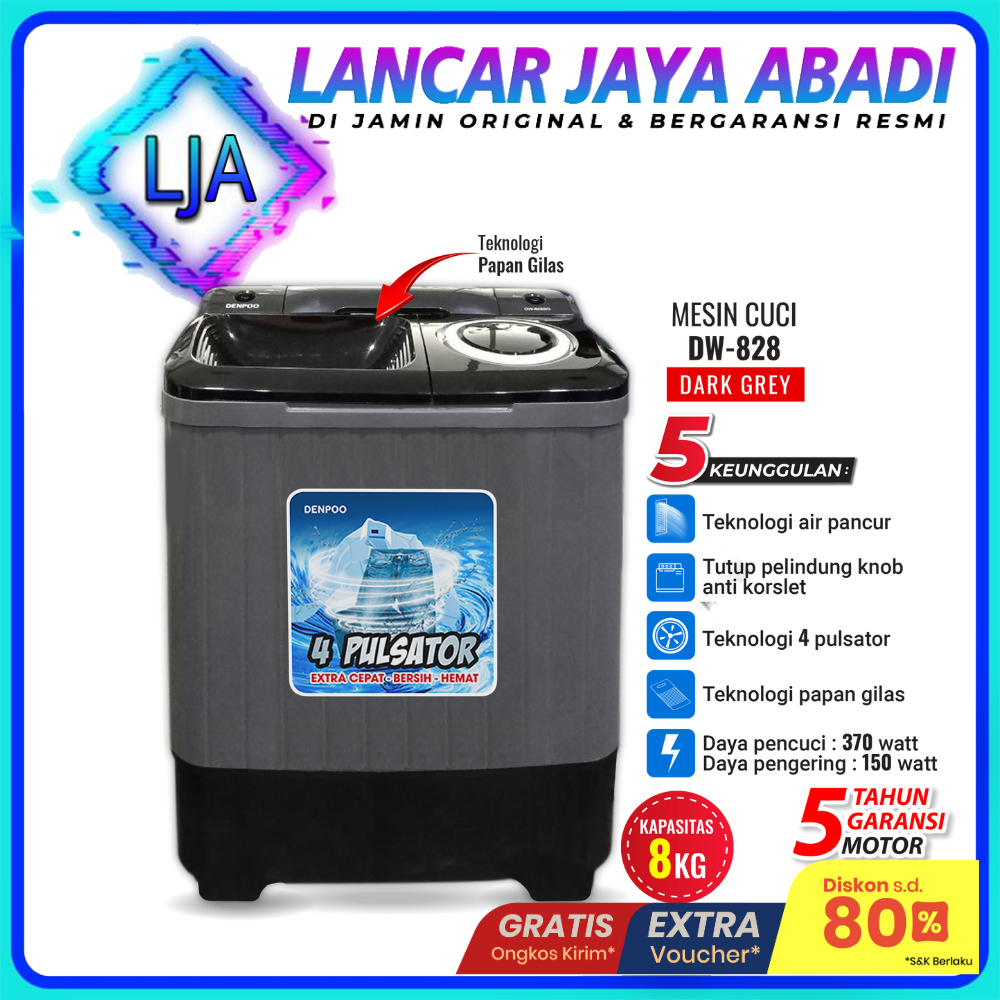 Mesin Cuci 2 Tabung 8 Kg DENPOO DW 89074P Body Fiber - DW 8907B
