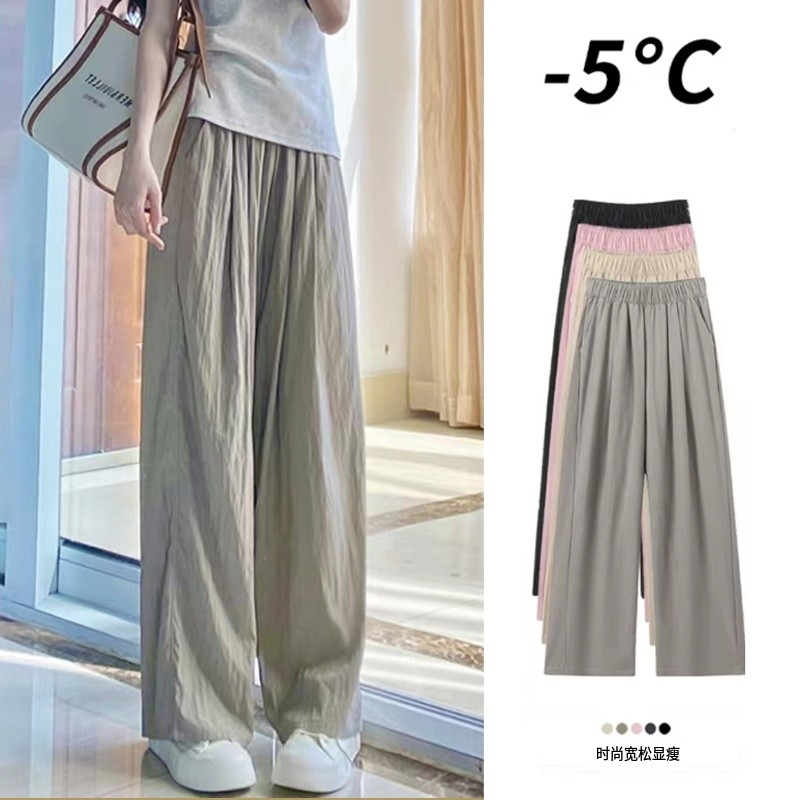 Celana Lebar Dan Kulot Kasual Berlipit Ramping Lurus Longgar Pinggang Tinggi Wanita