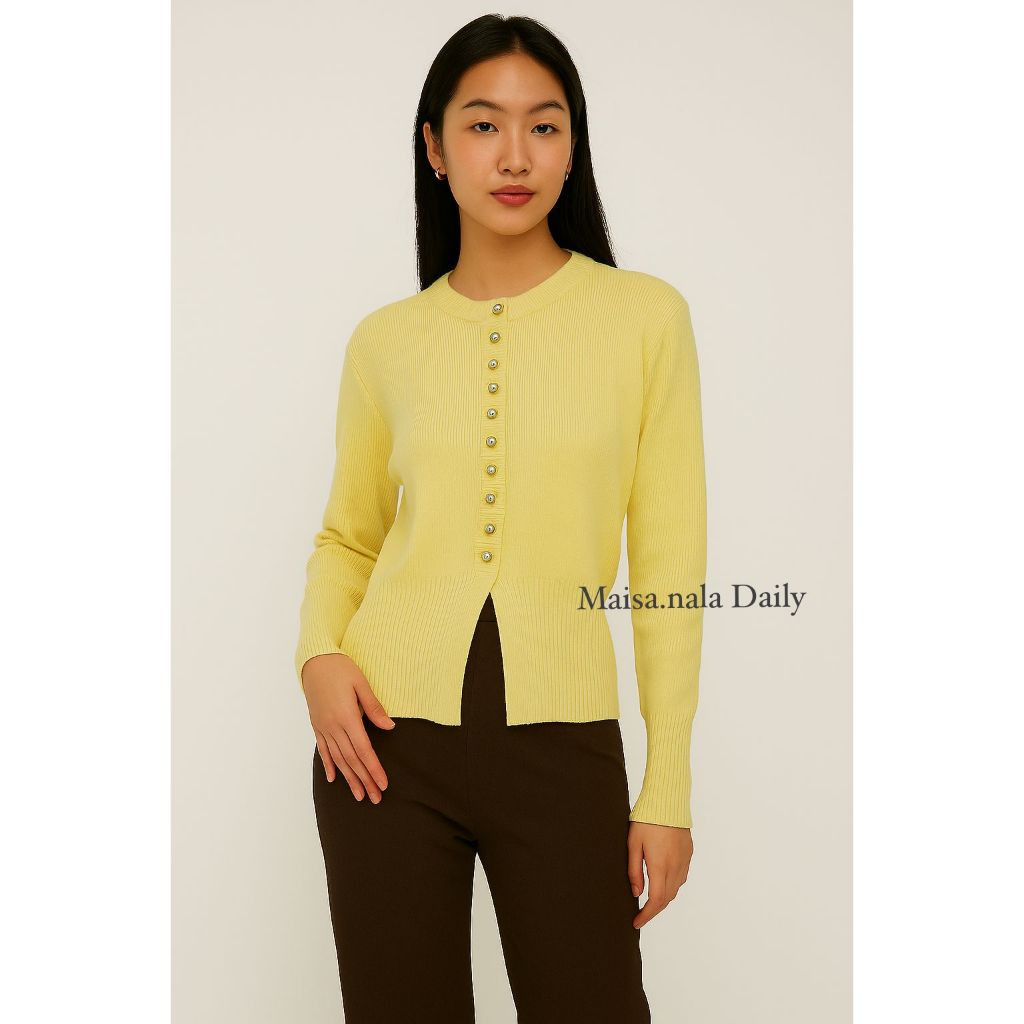 MAISANALA Yuma Cardigan Basic Soft Yellow Butter Knitwear Wanita Korean Style