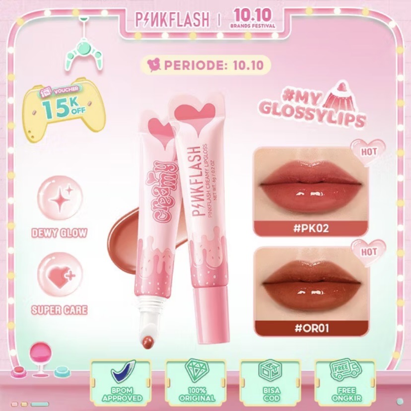 PINKFLASH My Glossy Lips Watery Glow Hydrating Lip Gloss Plump & Shine Fade Lip Wrinkles Soft & Creamy PF-L17