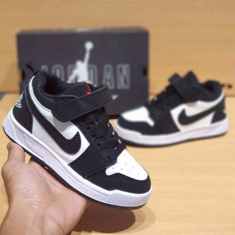 SEPATU ANAK KIDS SEPATU SEKOLAH ANAK SNEAKER ANAK NIKE AIR JORDAN UNISEX COWO CEWE BLACK WHITE PREMIUM